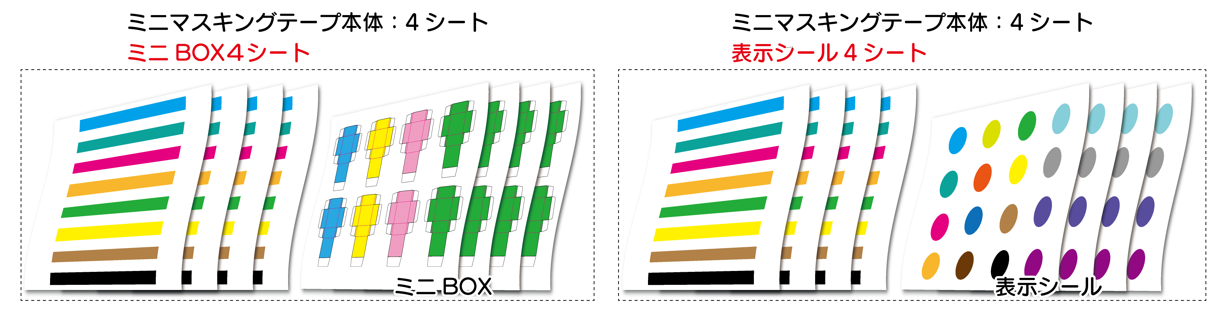 本体素材:和紙(マスキングテープと同一素材) / ミニBOX:アイベスト22.5 | 表示シール:グロスコート紙 /